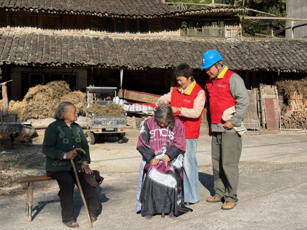 据了解,江岙村地处偏远,隐于群山深处,山路蜿蜒,青壮年多外出务工,村里仅剩老人们留守家园。由于地处偏远,老人们生活多有不便,甚至连理发这样的小事也成了难题。该公司服务队了解到这一情况后,每逢佳节和台风、寒潮等特殊天气便上门探望,为他们排查用电安全隐患并解决生活中的实际困难。此次活动中,队员们自带理发工具,为行动不便的老人提供义务理发服务,队员刘建芳熟练地给老人围上围布,拿起剪刀一边修剪,一边笑着安抚道:“阿婆,我以前学过理发的,头发交给我放心啊,保证给你理得漂漂亮亮的!”