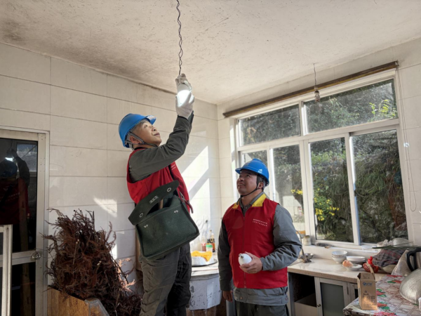 活动中,队员们重点排查厨房、卧室等用电集中区域的线路老化、电器过载问题,逐一检查插座、开关是否松动破损,对老化严重的接线端子进行加固处理。此次排查整改用电隐患10余处,为老人们更换了2个节能LED灯泡和4个破损开关。“同志们,你们人太好了,上次帮我修好了厨房的鼓风机。最近,外面过道的灯又坏了,忽明忽暗的晚上都不敢出去,怕摔跤!现在又让你们修好了,太感谢你们了!”看着亮起的灯光,独居的王奶奶脸上露出了欣慰的笑容,逢人就夸“电力的同志真好”!